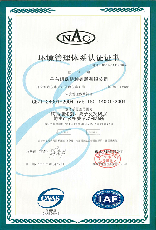 环境管理体系认证证书