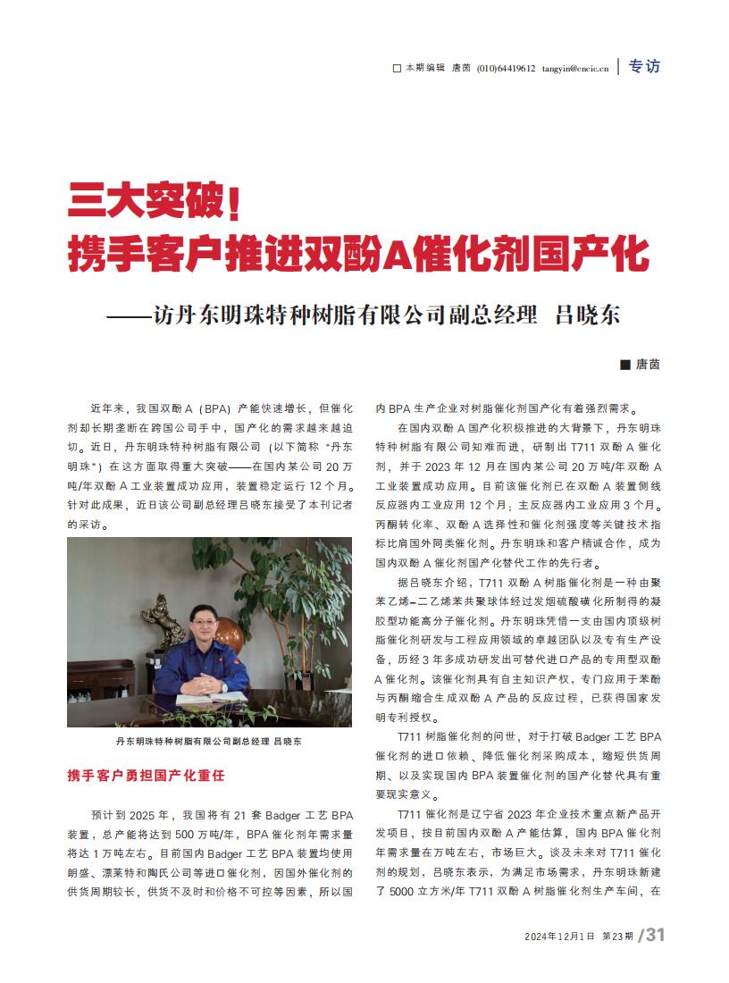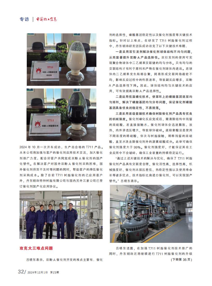 三大突破!携手客户推进双酚A催化剂国产化